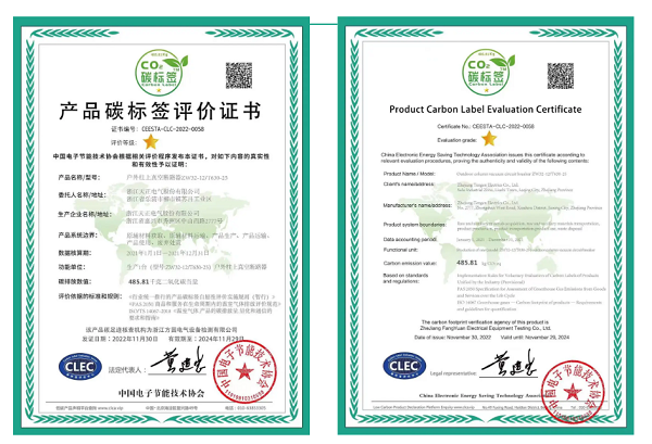 此次碳标签评价表明,爱游戏电气生产的户外柱上真空断路产品,在碳排放大数据方面按国际通行惯例推进,并具备一定的优势,对促进产品全供应链的温室气体减排,达成“双碳”目标具有积极作用。此外,爱游戏还获中国电子节能技术协会颁发的低碳产品供应商证书。